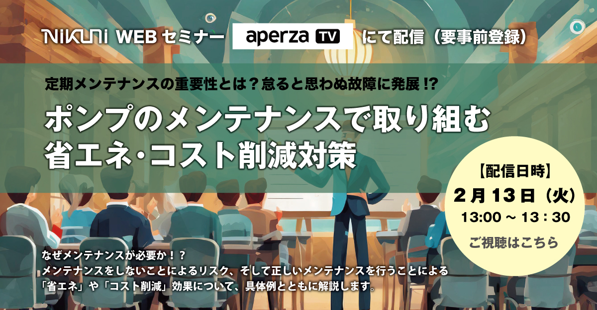 【WEBセミナーのご案内】ポンプのメンテナンスで取り組む「省エネ・コスト削減」対策|怠ると思わぬ故障に発展!?定期メンテナンスの重要性とは